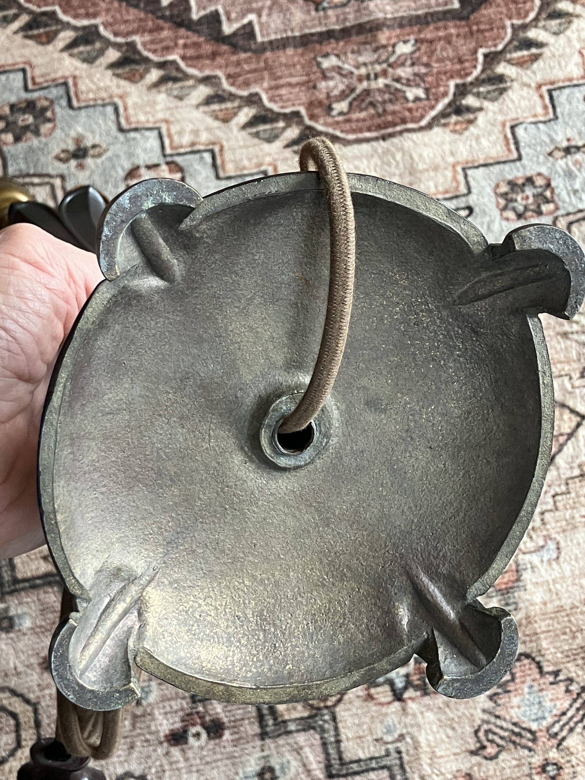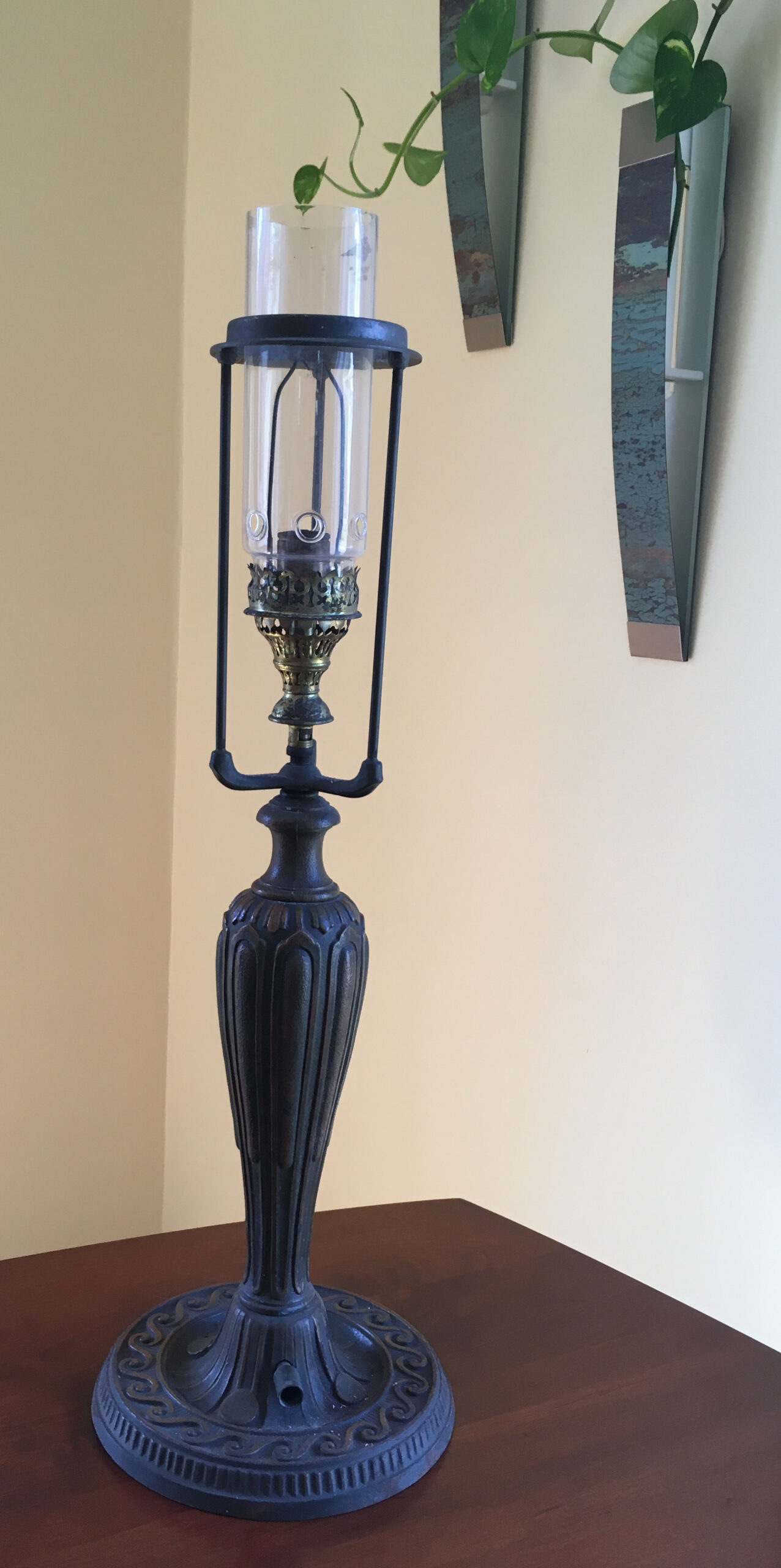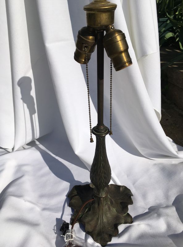 It took about 30 years for small cities, towns and neighborhoods to become “electrified”. A long slow period which made owning a portable lamp very desirable. A piece of furniture that not all homes had and most people desired. Often given as a wedding gift and cared for with a lot of respect because of the cost. Having portable lamps in your home was a cool thing to have. It seems like every decade a new product moves in like the (refrigerator, sewing machine, washing machine, automobile, TV, computer, cell phone etc.). And while some of these products become discontinued and disposable. The portable lamp “light bulb and switch” are still valued with respect. The bases below are original genuine antique lamp bases. Over the past 120 years they have all been modified with new light bulbs, cords, sockets, top adapter and possibly repainted several times by the original owners. Yes they are used, worn and aged. They have survived. If you have a shade and considering using one of the bases below. First visualize it on the base given the sizes of both. Consider the type of shade top you have and how it will or will not attach to the base top. Maybe what you will need to do for this marriage to happen. If you have any doubt please email Len.Daley@yahoo.com pictures of your shade and the base your interested in. I maybe able to help. Questions please call me Len Daley 401-314-6005 (12-6ESTime) non text #